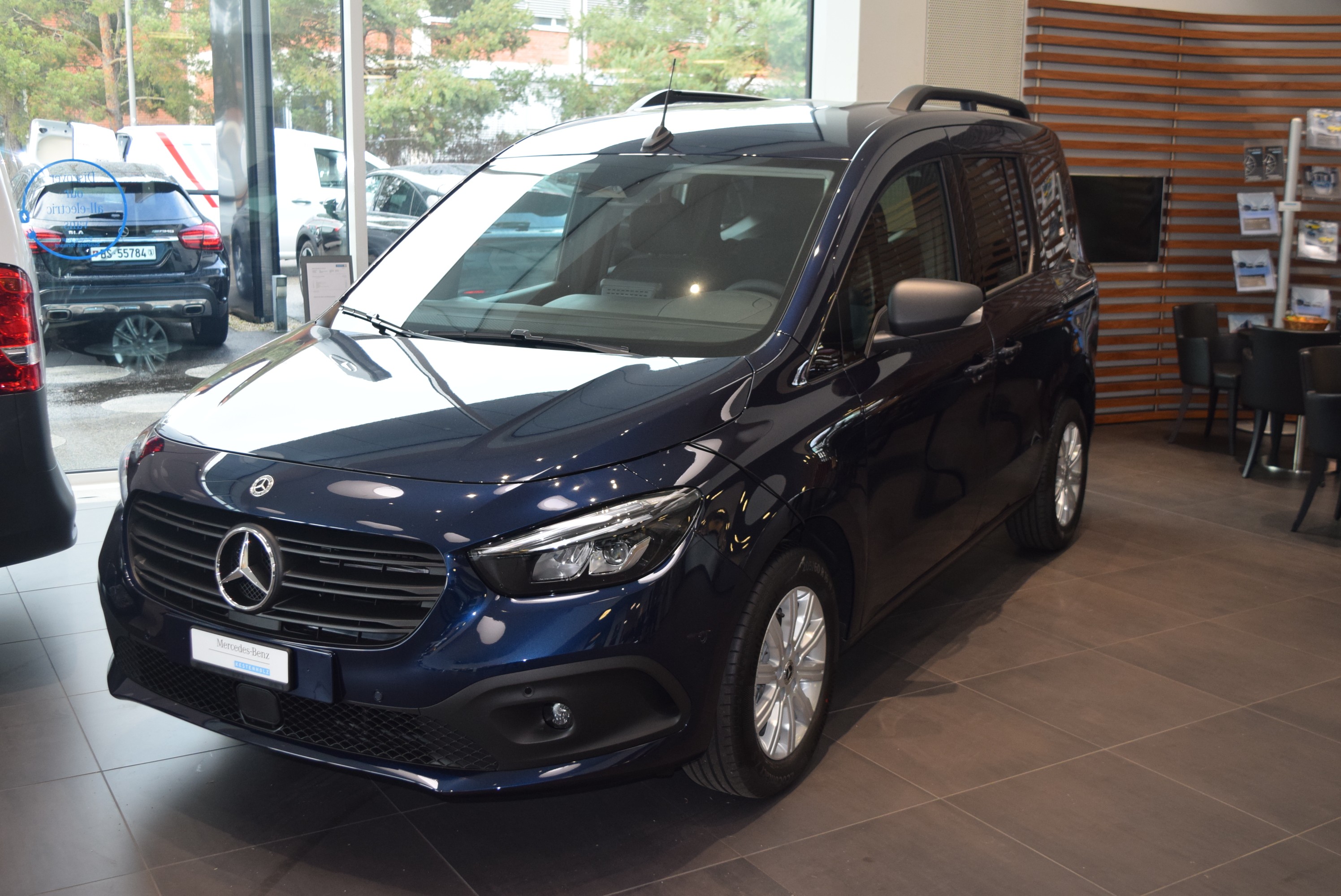 Lagerfahrzeug/WB80877/Tourer PRO/Colorverglasung im Fond, Schwarzglas/Sitzkomfort-Paket/Licht-Paket/Klimatisierungsautomatik THERMOTRONIC/7-Gang-Automatikgetriebe/Digitales Extra: MBUX Navigation Plus/Dachreling mit integriertem Grundträger/cavansitblau metallic