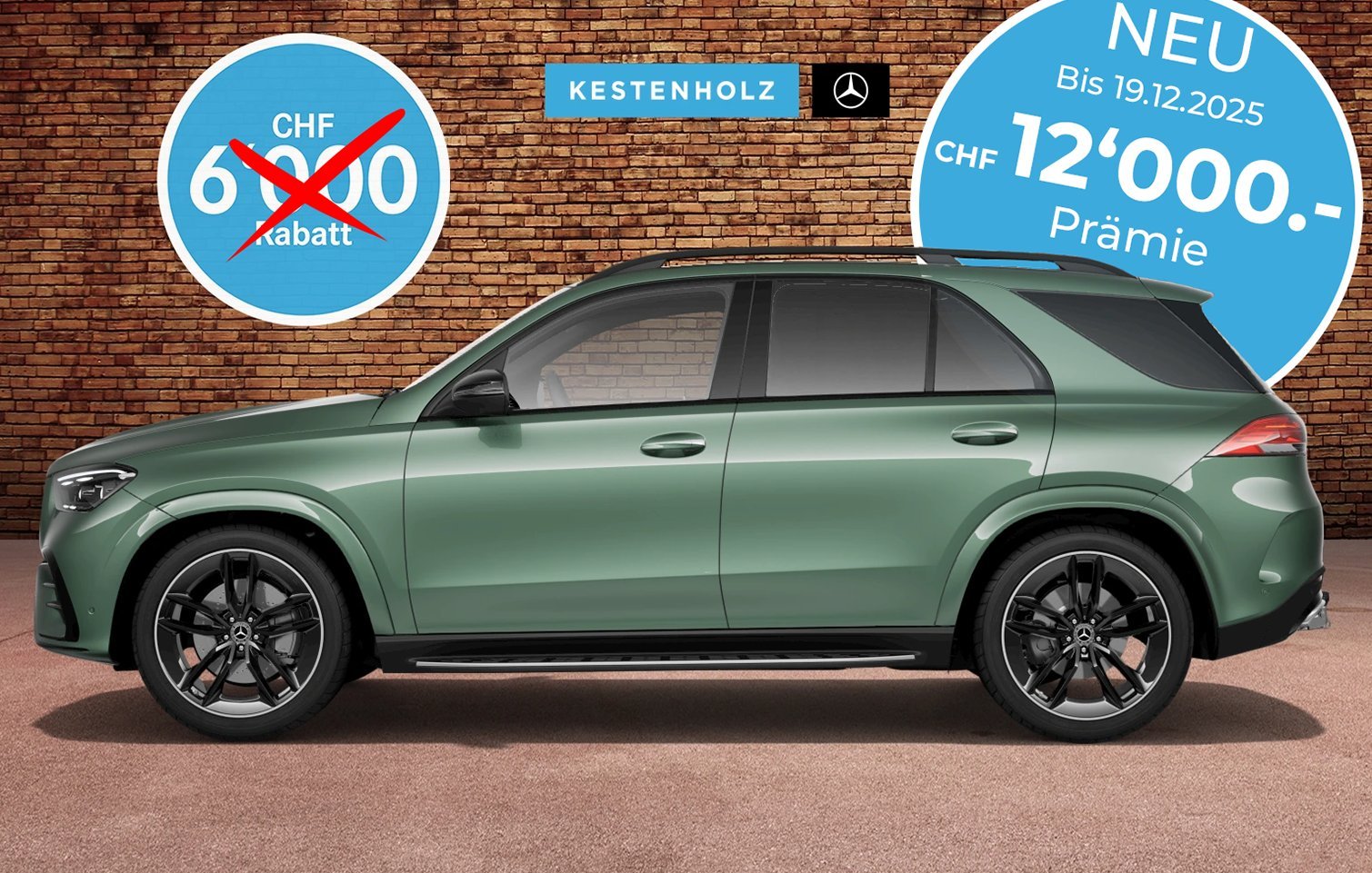 [2] GLS 450 4MATIC , 381+20 PS (280+15 kW), Barkaufpreis: CHF 121‘556.– inkl. CHF 8‘000.– 4MATIC Prämie, 10.1l/100 km, 230 g CO2/km, Energieeffizienz-Kategorie: G.[1] Abgebildetes Modell: GLC 220 d 4MATIC, 197+23 PS (145+17 kW), Barkaufpreis: CHF 86‘029.–, inkl. CHF 4‘000.– 4MATIC Prämie, 5.5 l/100 km (Benzinäquivalent: 6.3 l/100km), 144 g CO2/km, Energieeffizienz-Kategorie: E.[1] Angebot gültig bis 30.11.2025 auf sofort verfügbare PW-Lagerfahrzeuge (Ausgeschlossene Modelle G-Klasse, V-Klasse, T-Klasse, EQT, EQV, CLA (C174/C178) und Mercedes-Maybach). Unverbindliche Preisempfehlung. Änderungen vorbehalten.