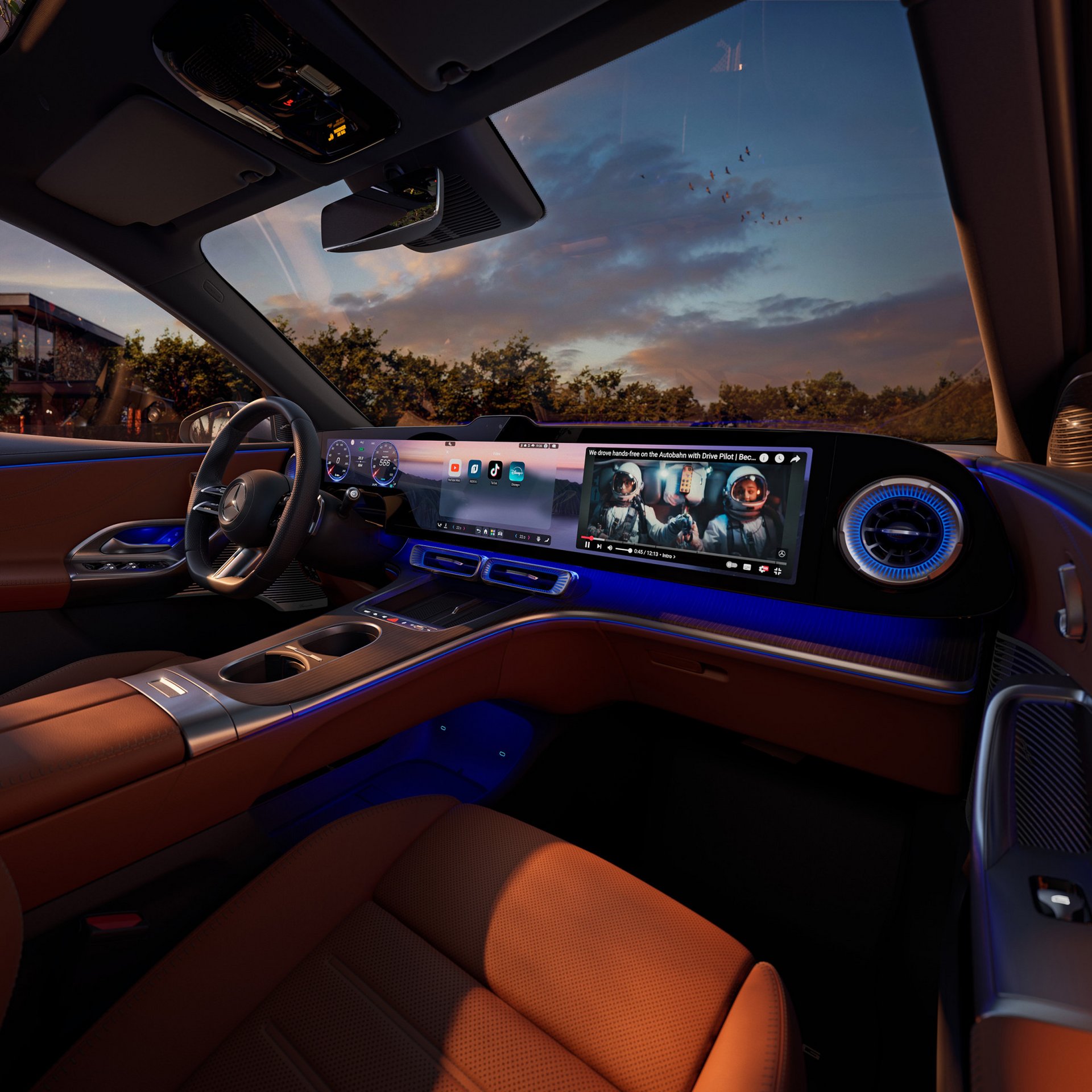Der 99,3 cm (39,1 Zoll) große, nahtlose MBUX Hyperscreen, der sich über die gesamte Breite des Cockpits zieht, verbindet modernste Technologie mit intuitiver Bedienung. Hochauflösende Darstellungen, personalisierte Layouts und intelligente Bedienlogik schaffen ein immersives Erlebnis.