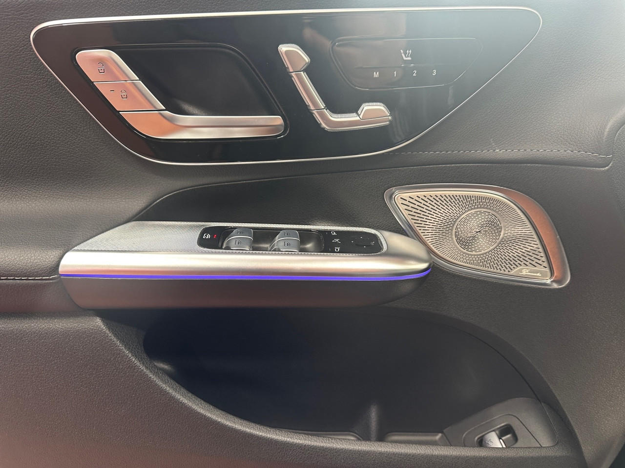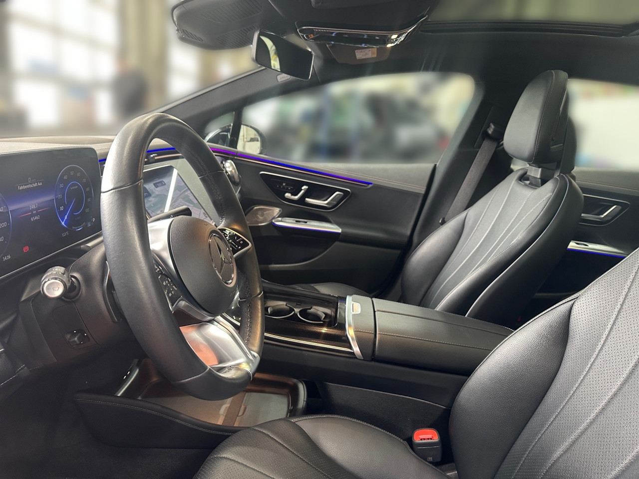 Interieur: Sitze Kunstleder Ledernachbildung ARTICO schwarz / spacegrau, Innenfarbe schwarz, Multifunktions-Sport-/Lederlenkrad, Bordcomputer, Rücksitze klappbar, Dekoreinlagen: Zierelemente Lasercut hinterleuchtet mit Mercedes-Benz Pattern, Mittelkonsole Feinstrukturoptik schwarz, Zierelement hinterleuchtet, Lenkrad-Schaltwippen