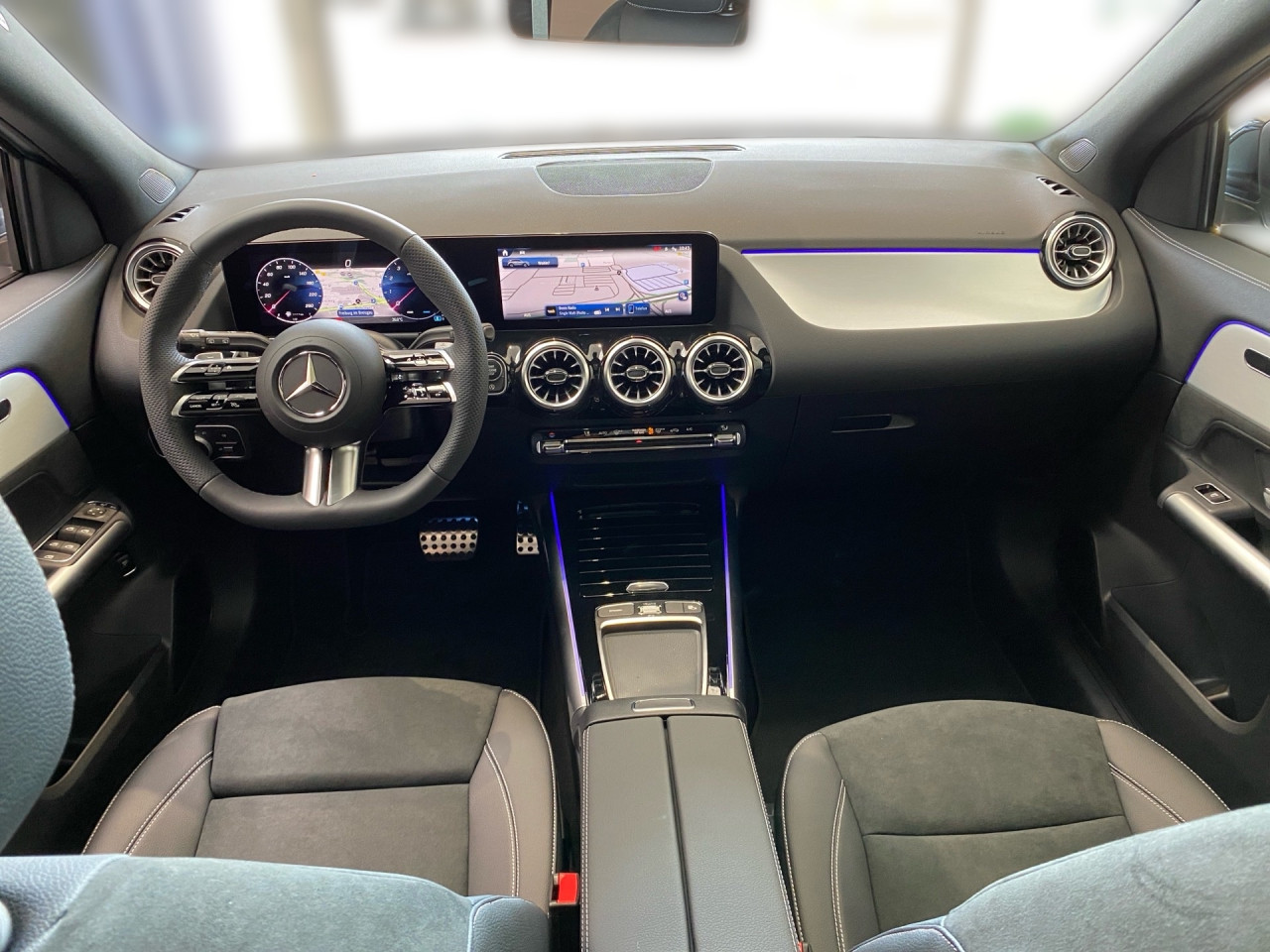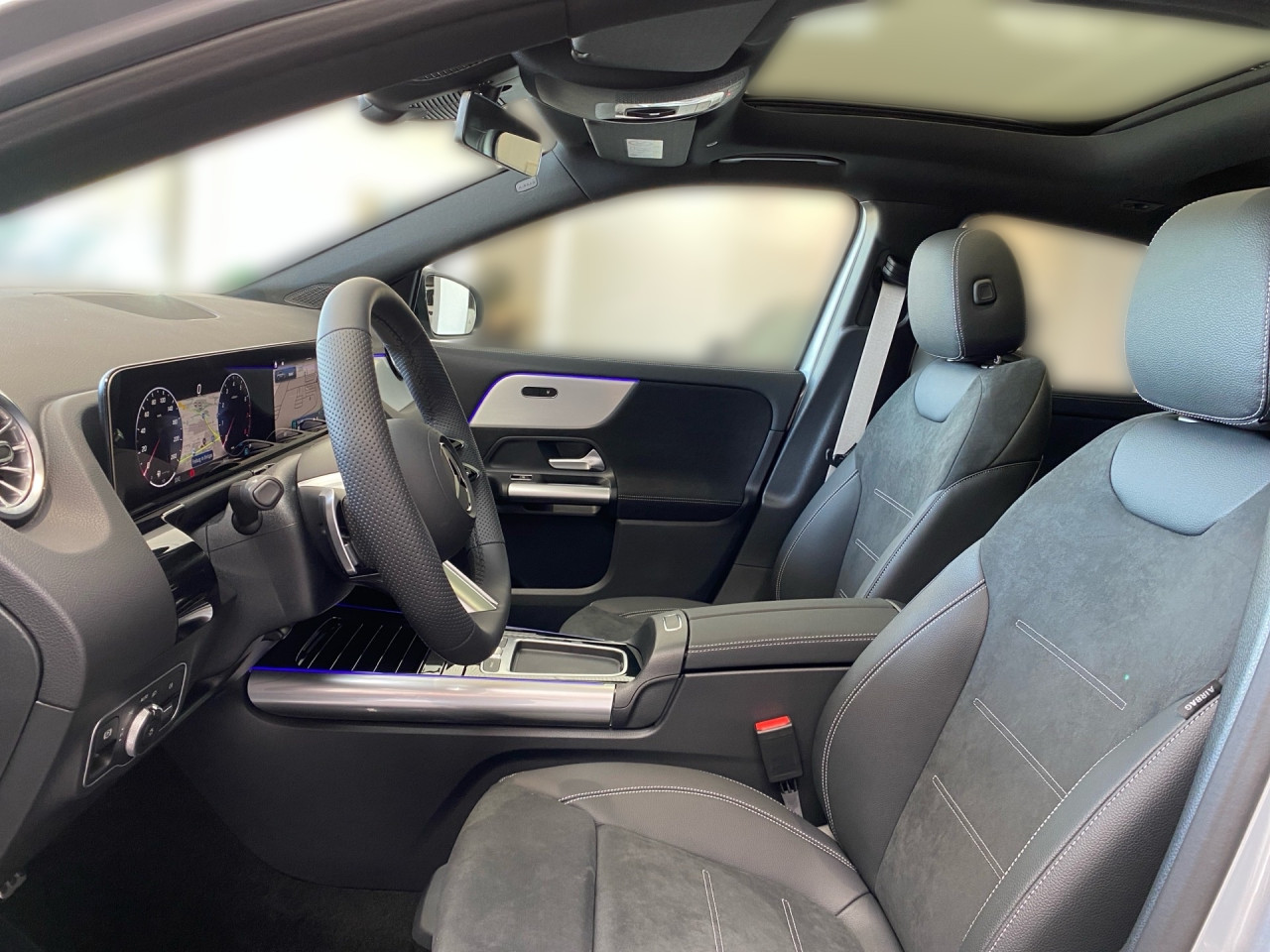 Interieur: Sitze Kunstleder Ledernachbildung ARTICO / Mikrofaser MICROCUT schwarz, Innenfarbe schwarz, Multifunktions-Sport-/Lederlenkrad, Bordcomputer, Dekoreinlagen: H44 Zierelemente Aluminium mit Längsschliff hell, Lenkrad-Schaltwippen