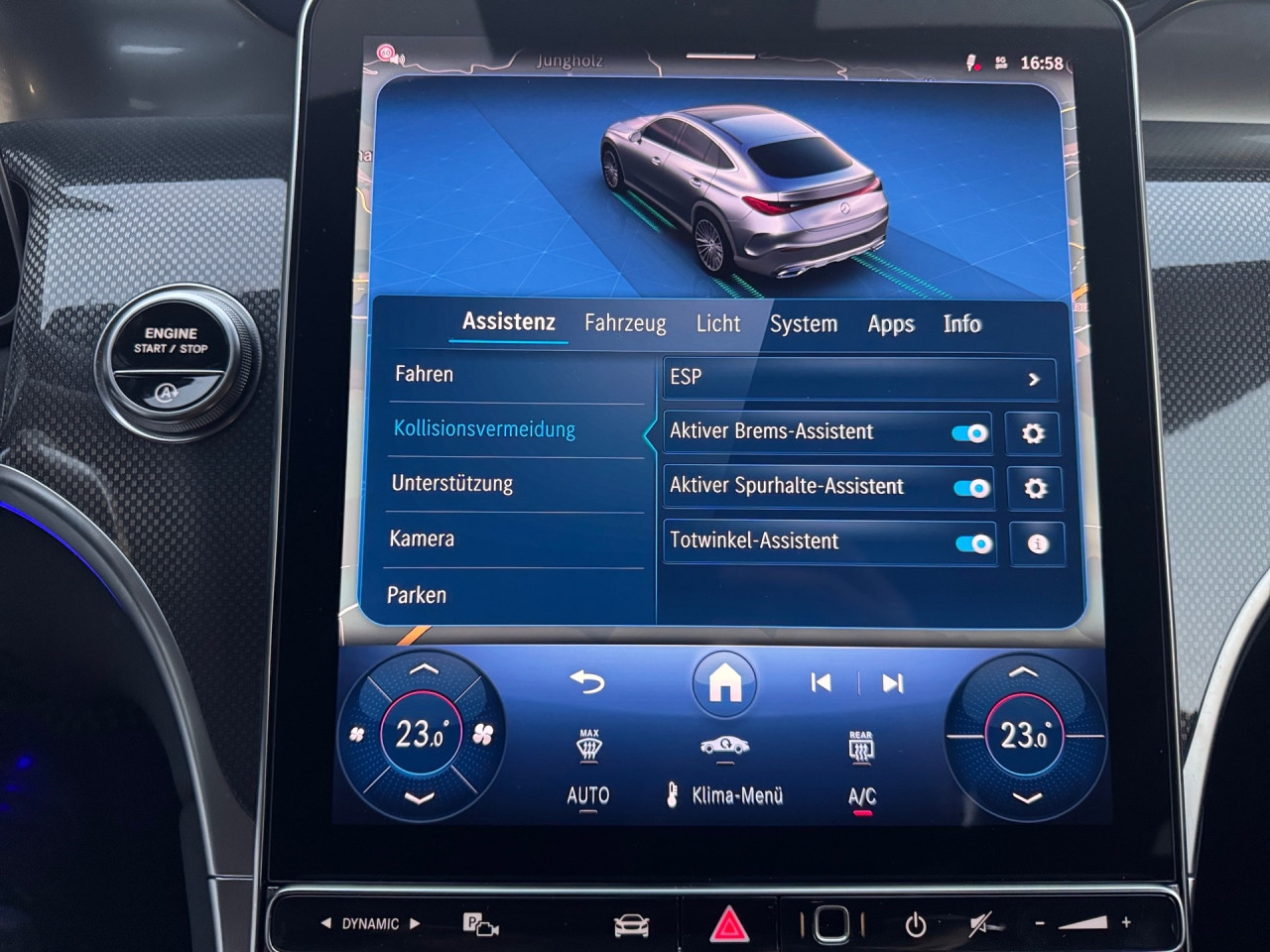 Assistenzsysteme: Fernlichtassistent, Aktiver Park-Assistent inkl. PARKTRONIC, Surround-Kamerasystem: Park-Paket mit 360°-Kamera, Fahrlichtautomatik, DISTRONIC, Berganfahrhilfe, Spracheingabesystem, Müdigkeitserkennung, Totwinkel-Assistent, Spurhalteassistent, Bremsassistent, COLLISION PREVENTION ASSIST, ATTENTION ASSIST, Verkehrszeichenerkennung, Gespannstabilisierung