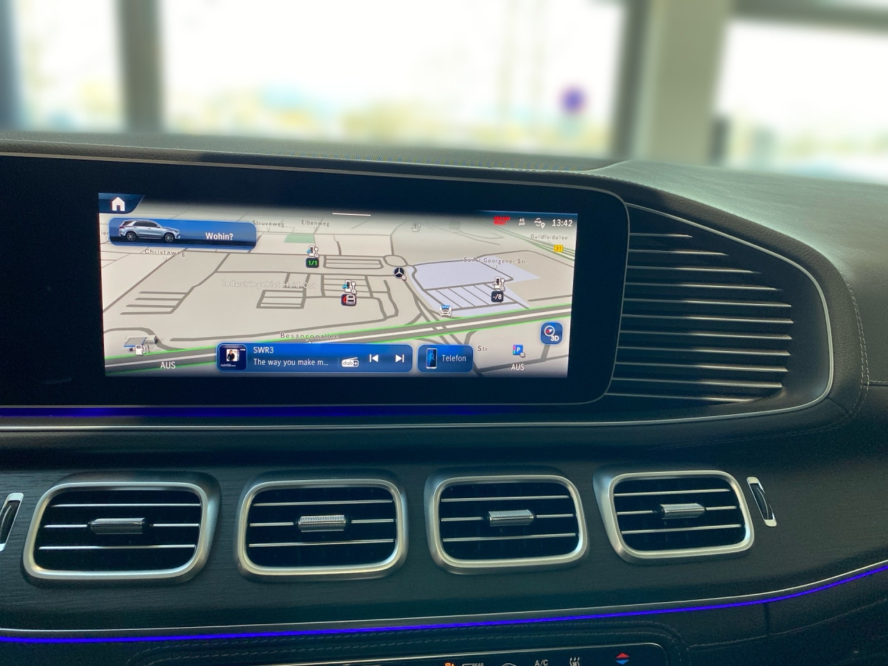 Audio & Kommunikation: MBUX, Navigationssystem, Radio, Digitaler Radioempfang DAB, Burmester Surround-Soundsystem, USB Anschluss, Mercedes connect me, Handyvorbereitung Bluetooth, Android Auto u. Apple CarPlay, WLAN Hotspot