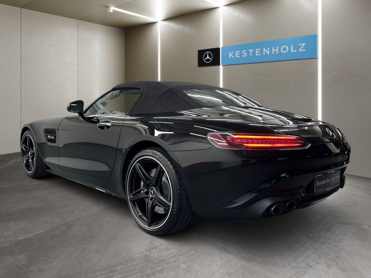 Exterieur: Sportfahrwerk, AMG Leichtmetallfelgen 20 Zoll: 5-Speichen-Design, Außenspiegel elekt. anklappbar, Softtop, Reifenpannenset, AMG Performance-Abgasanlage, Notrufsystem
