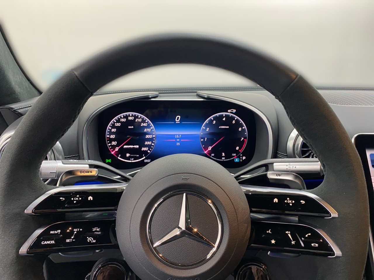 Komfort: Widescreen Cockpit, Klimaautomatik, Memoryfunktion Fahrersitz, Sitzheizung Fahrer/Beifahrer, AMG Performance Sitze, Armauflage Fahrer/Beifahrer, Servolenkung, Lenksäule verstellbar, Keyless-Start, Start-Stopp System, Zentralverriegelung, Fensterheber elektrisch, Automatisch öffnende Heckklappe, AIRSCARF-Kopfraumheizung, Sitzklimatisierung vorn, Getränkehalter