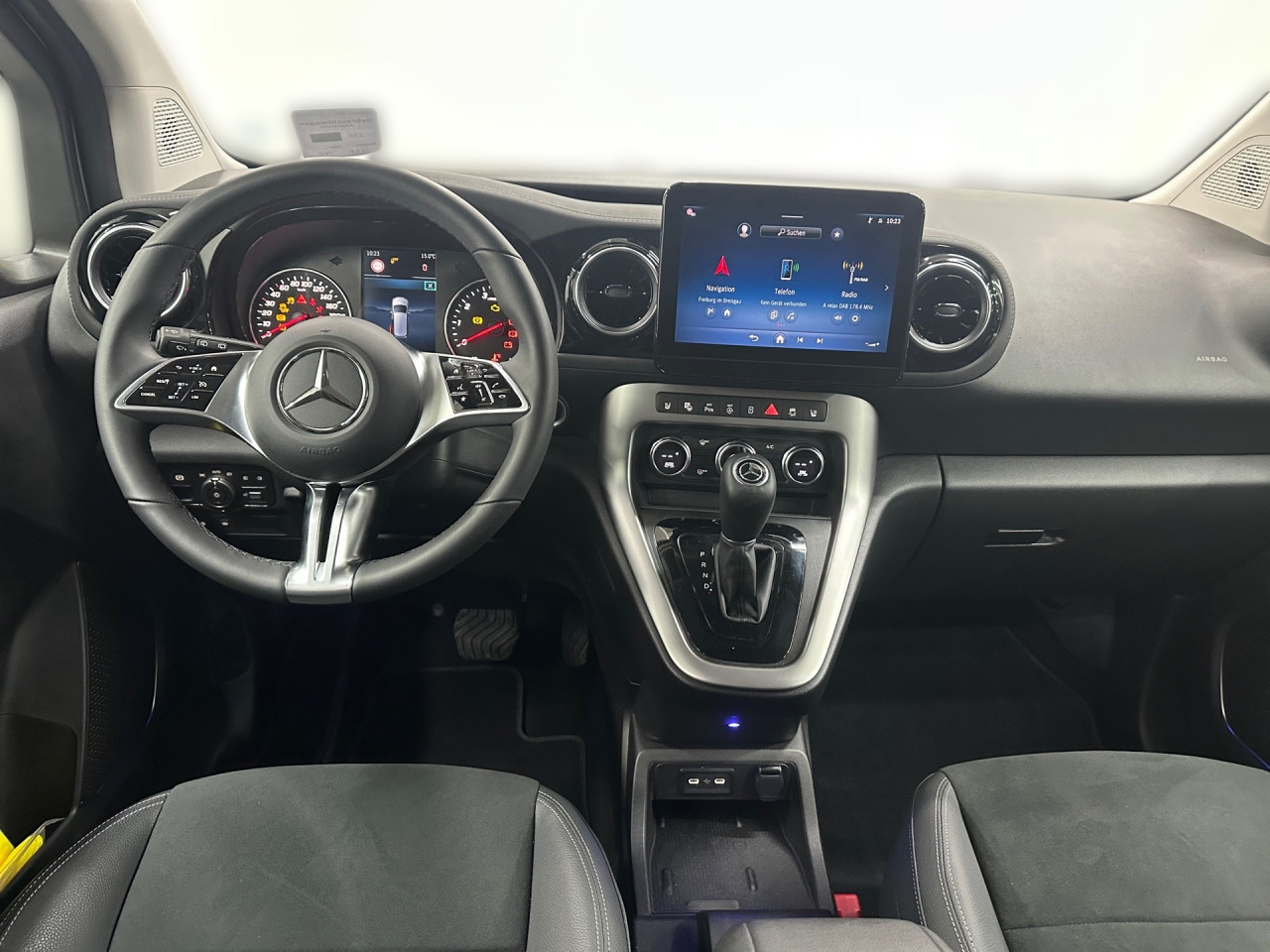 Audio & Kommunikation: MBUX, Navigationssystem, Radio, Digitaler Radioempfang DAB+, USB Anschluss, Handyvorbereitung Bluetooth, Smartphone-App Integration, Kabelloses Laden für Handys, WLAN Hotspot