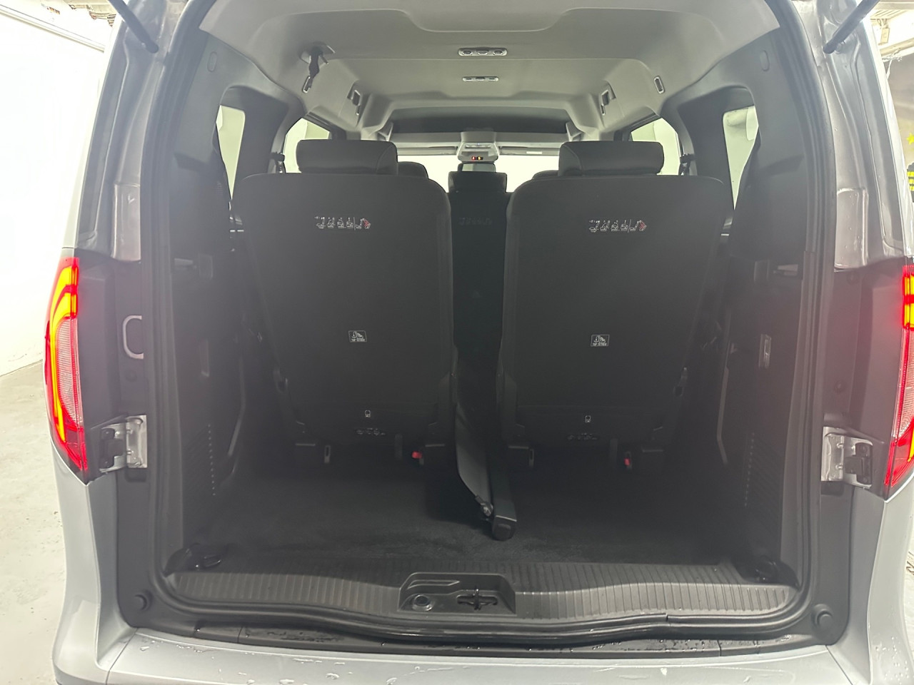Interieur: Sitze Kunstleder Mikrofaser MICROCUT, 7-Sitzer / 3. Sitzreihe, Multifunktions-Lederlenkrad, Lenkradheizung, Bordcomputer, Laderaumabdeckung, Dekoreinlagen: FI8 Zierelemente Mattlack Seidenoptik silber, FI9 Zierelement I-Tafel Hochglanzlack schwarz, SZ6 Tisch und beleuchtete Zierelemente an Rückenlehne, Bodenbelag Teppich
